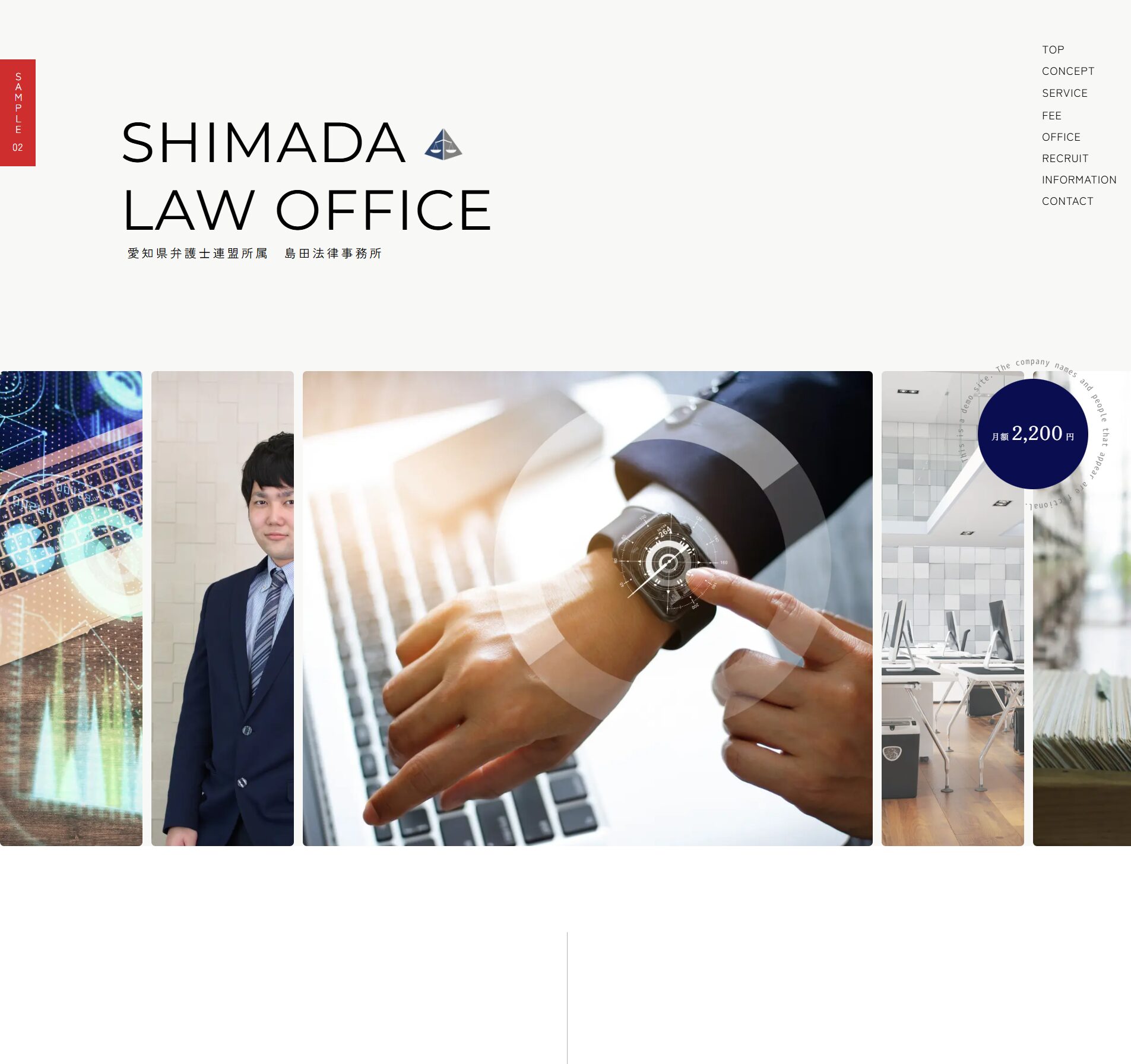 士業の方々の名刺代わりにもなるWebsiteとしてふさわしい安心感・信頼感をベースとして、細部にデザイン性を取り入れています。